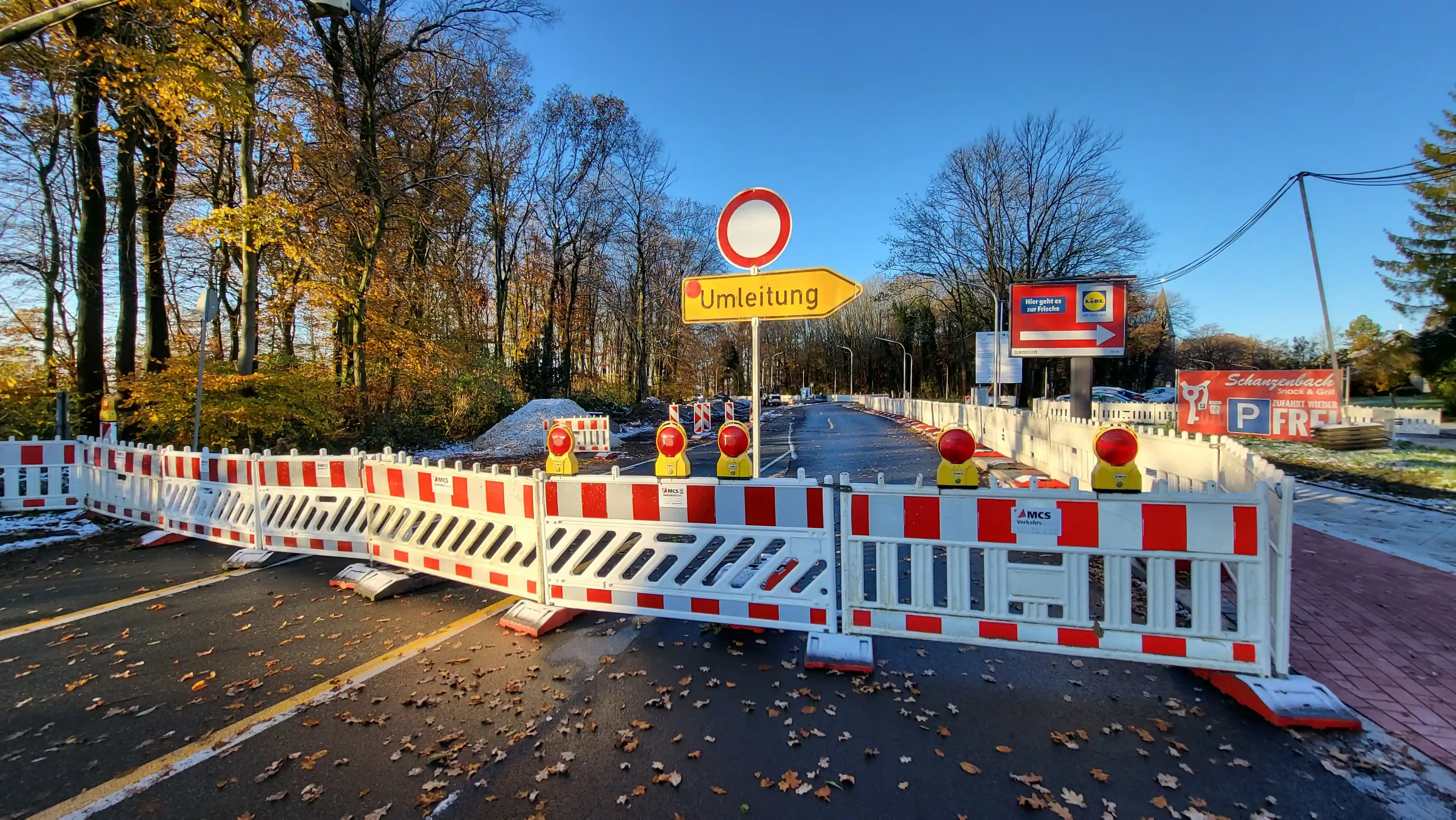 Für die Sanierung einer vielbefahrenen Ampelkreuzung in Hamm richtete Caddenz eine wechselseitige Vollsperrung ein. Die Maßnahme wurde durch unsere Niederlassung MCS Verkehrsraum in Bönen umgesetzt.