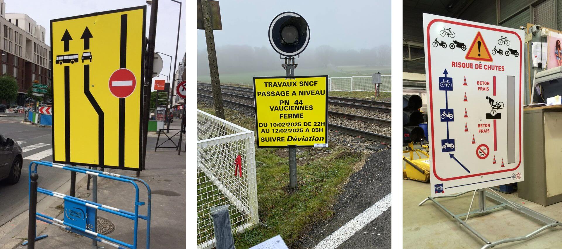 - Lisibilité et résistance : choix des couleurs, pictogrammes et matériaux pour garantir une bonne visibilité, en extérieur, sur chantier, en zone urbaine ou événementielle