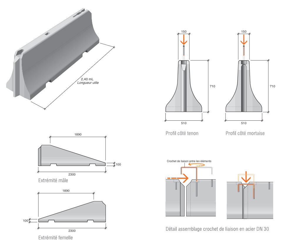 Le séparateur béton est un véritable bouclier entre le flot des véhicules et l'espace vulnérable des travaux. La GBA se présente comme une solution à la fois pratique et ingénieuse pour prévenir les incidents et protéger les vies. Très pratique en milieu urbain du fait de sa petite taille, le séparateur béton permet de limiter ou d'interdire les accès en zones urbaines ou rurales. Existe en 1m, 2,4 m et 3,8 m